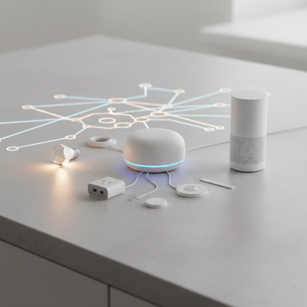 - Zigbee ir Z-Wave: Tai specialiai išmaniesiems namams sukurti protokolai. Jie naudoja labai mažai energijos, todėl puikiai tinka baterijomis maitinamiems jutikliams. Kad šie įrenginiai veiktų, reikalingas specialus centrinis valdiklis (angl. hub). Nors pradinė investicija kiek didesnė dėl valdiklio, ilgalaikėje perspektyvoje šie įrenginiai veikia stabiliau ir neapkrauna namų Wi-Fi tinklo.