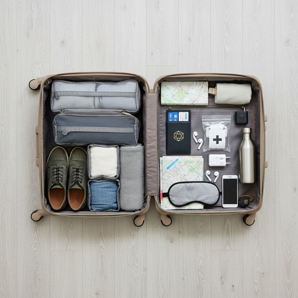 Paskutinis, bet ne mažiau svarbus žingsnis – pats krovimo procesas. Ekspertai rekomenduoja daiktus pradėti krautis likus bent 2–3 dienoms iki kelionės, o ne paskutinį vakarą. Tai suteikia laiko prisiminti pamirštus daiktus ir, reikalui esant, nubėgti į parduotuvę. Naudokite lagamino organaizerius (packing cubes). Jie ne tik padeda palaikyti tvarką, bet ir suspaudžia drabužius, taip sutaupydami vietos.