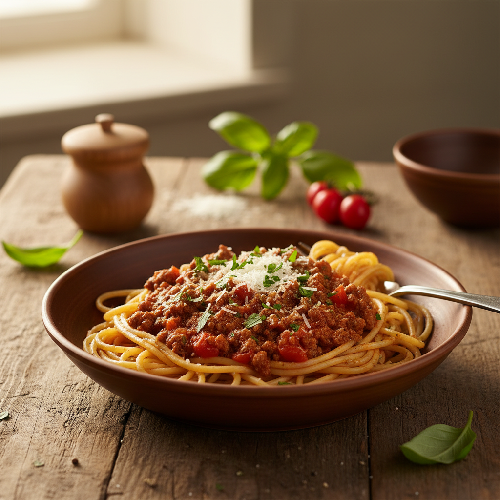 Šis patiekalas daugelio mėgstamas visame pasaulyje – sotus, aromatingas ir skanus. Tiesiog apkepkite svogūną ir česnaką, sudėkite faršą, kepkite, kol sukris grumstai, įpilkite pomidorų pastos ar smulkintų pomidorų konservų, prieskonių, ir troškinkite apie 15 minučių. Padažą užpilkite ant šviežiai virtų makaronų, pabarstykite tarkuoto sūrio – ir jūsų vakarienė paruošta.