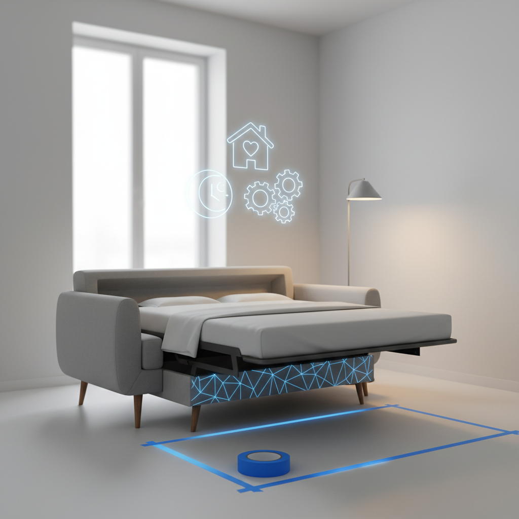Prieš pradedant paieškas baldų salonuose ar internetinėse parduotuvėse, būtina tiksliai įvertinti turimą erdvę. Dažna pirkėjų klaida – išmatuoti tik sofos ilgį ir plotį, pamirštant, kad išskleistas baldas užims kur kas daugiau vietos. Ekspertai pataria ant grindų, naudojant popierinę lipnią juostelę, pasižymėti ne tik suskleistos, bet ir išskleistos sofos gabaritus. Tai padės vizualiai suvokti, ar liks pakankamai vietos praėjimui, atsidaryti durims, ir ar nereikės kasdien stumdyti kitų kambarį esančių baldų.