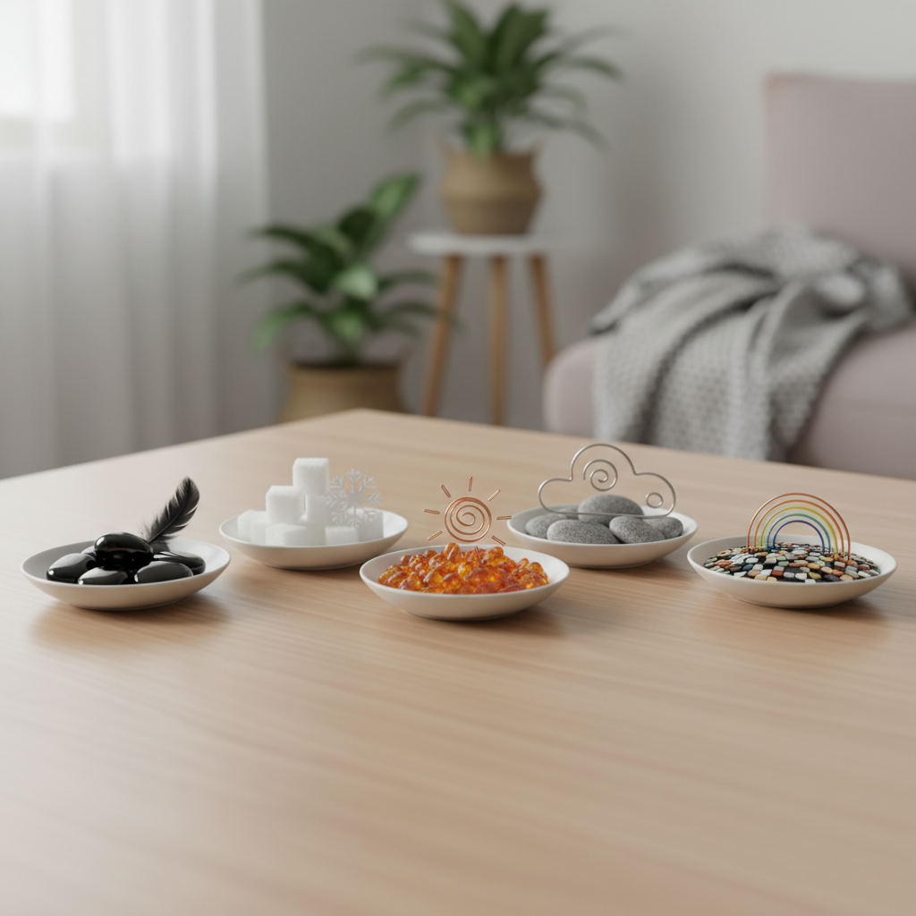- Tamsūs elementai ir objektai: Angliukas, Dūmas, Kava, Šokoladas, Grafikas, Oniksas, Obsidianas, Aksomas, Švinas.